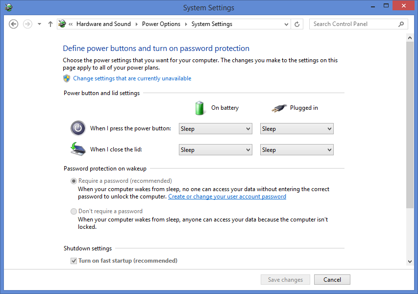 An option should be available called "Turn on fast startup" (recommended).