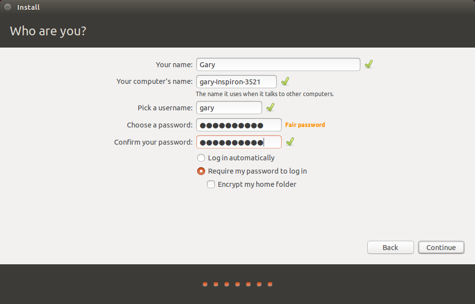 Enter your name, a name to identify your computer, a username and a password.